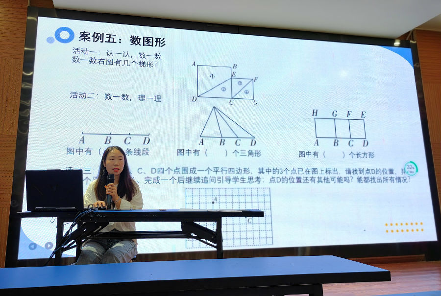 张老师从复习课的目标定位、复习课的种类和复习课的教学方式等三个层面展开观点的阐述,她认为复习的目标要精确、精准,应该要立足学生基础,在先理后连、先练后理、理练相间等活动中开展深入复习活动,同时张老师结合案例《多边形的面积》、《运算定律理解与运用》、《混合运算》、《面积的整理与复习》等四个课例进行详细说明。