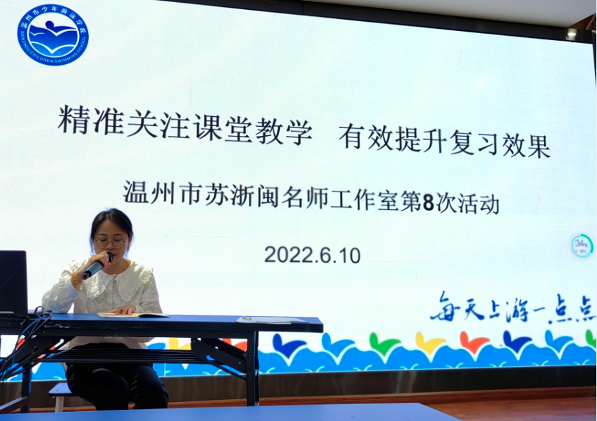 6月10日,温州市苏浙闽名师工作室齐聚温州市少年游泳学校开展第8次活动。本次活动由温州市黄龙第一小学黄拓前老师主持。