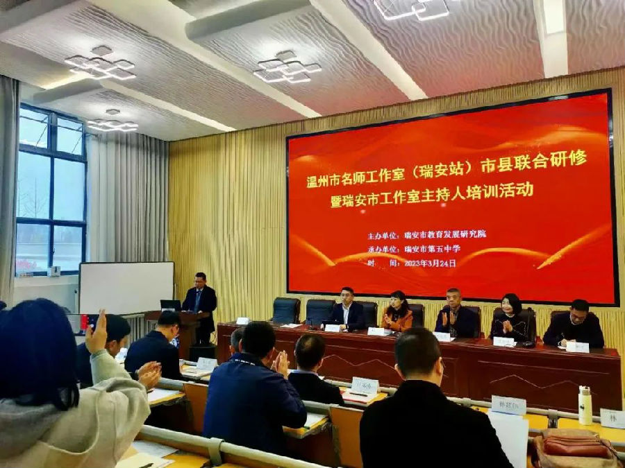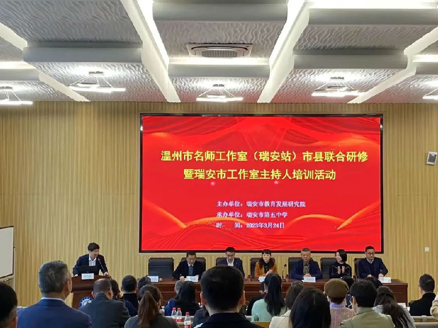 人间最美三月天,春花烂漫绽新颜。万物复苏的季节,洋溢着美好的诗意。2023年3月24日,一群对班主任工作充满热忱的老师们齐聚在瑞安五中,共同迎来温州市名师工作室(瑞安站)市县联合研修暨瑞安市工作室主持人培训活动,以及温州市项延唐名主任工作室的开班仪式。