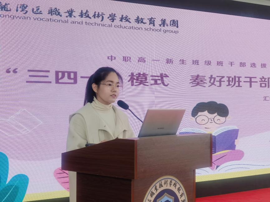 龙湾职技校的杨首静老师带来以《“三四一”模式,奏好班干部选拔进行曲》为题的讲座。她主张在班干部选拔中“围绕一特色,采取三流程、使用四方式”,并详细讲述了通过知己知彼,生涯启蒙-职我合一,合理匹配-模拟招聘,职场实战-定性定量,成功录取四项环节,选拔一支职业型班干部团队的过程。