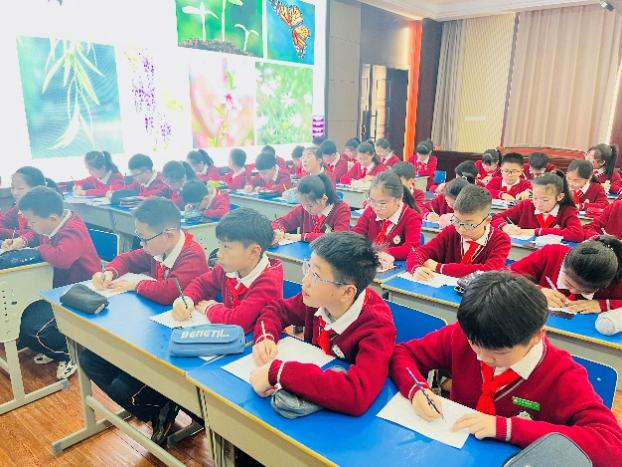 接下来由湖前小学美术教师黄莉老师,带来公开课《适合纹样》。黄老师轻松的谈话导入,让学生从观察校园,发现春天校园的变化开始,创设了校园纹样设计大赛的大情境。整堂课用教学活动单串联,通过简化图形、认识纹样、纹样变形、构成形式四个递进式的任务,让学生带着问题学,循序渐进,实现思维的多维度提升。