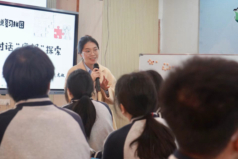 紧接着,赵龙钗老师为大家带来了中考小说复习课《玩转我的小说复习拼图——小说人物对话“密钥”探索》。课上,赵老师带领学生发现目前“攻略”存在着知识点零散,未形成结构化认识等问题。随后,学生通过小组合作梳理课内小说印象深刻的人物对话,寻找解读人物对话的“密钥”,并以以思维导图的形式呈现合作成果。接着,赵老师引领学生运用“密钥”,解读人物对话,打开小说《胖子和瘦子》的主旨。在这个环节中,学生主动建构了起从小说对话解读小说主旨的多条路径,分别为关注对话对小说人物、情节、环境的塑造作用。最后,赵老师引导学生借助本课所学,复盘学习所获,畅谈如何通过小说人物对话读“懂”小说,并将总结的经验应用于鹿城区一模卷小说《过马路》的主旨解读中。