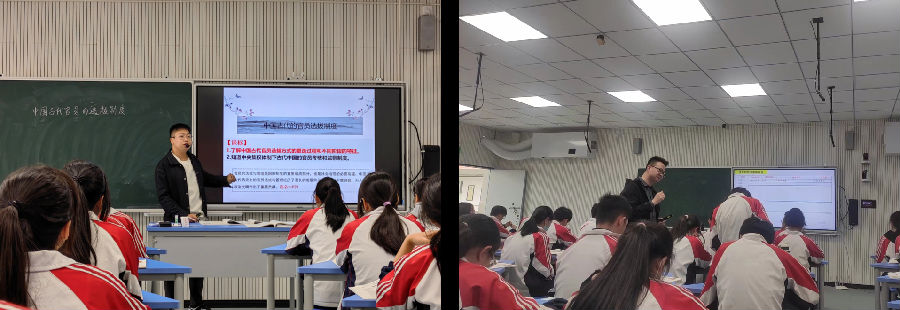 5月12日早上,三位老师针对高二一轮复习课《中国古代官员的选拔制度》开展同课异构教学。钱库高级中学的林正南老师侧重学生解题技巧与能力的培养,灵活运用表格、时间轴等教学辅助手段进行知识点的梳理与回顾,条理清晰,课堂教学过渡自然,课堂节奏紧凑。苍南中学的张立满老师基于中国古代官员选拔演变历程分析重点阶段特征,引导学生感悟官员选拔制度是社会治理的必要前提之一,史料选取准确,逻辑明晰,课堂教学中语言的表达与问题的铺陈顺畅巧妙。金乡高级中学的陈庆为老师立足于史料实证的学科素养,充分考虑学生学情,让复习课回归课本,充分运用教材的图片、文字史料,深入剖析教材对教材重组并加以重构,取舍得当重点突出,课堂互动气氛热烈。