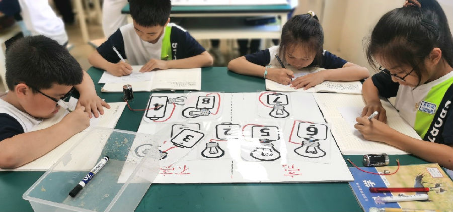 首先,由孙芒芒老师带来课例《点亮小灯泡》。在课堂伊始,孙老师引入“眼力挑战”的游戏,激发孩子仔细观察连接电路的异同点,又利用课前调查了解了学生对点亮小灯泡的前概念。学生在试错的基础上展开了如何点亮小灯泡的实践研讨。孩子们对于有疑问的点亮方式开展激烈讨论之后,孙老师借机打开了小灯泡的内部结构,进一步引发孩子思考,电流是如何经过灯泡的呢?层层递进的教学设计让孩子的科学思维在研讨之中得以发展。