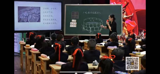 来自广东珠海香洲甄贤小学的付雪莲老师给我们带来了观摩录像课一年级下册《吃水不忘挖井人》,付老师基于学习任务群的备课理念,整节课围绕“红井”设计了三个任务群学习,任务一:“红井的位置”,带领学生学习课文的第一自然段。任务二:“红井的故事”,带领学生学习毛主席带领战士们挖水井的段落。任务三:“弘扬红井精神”学习课文最后一段。三个学习任务群把课文的识字、写字转变为有学习任务驱动的课堂形式,调动了学生学习的积极性,让孩子在任务解决的过程中认字和写字,理解课文中难懂的词语,缩短孩子们和那个遥远的年代的距离,帮助他们更好地理解课文内容。