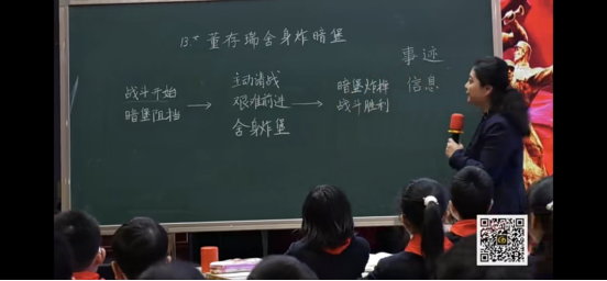 来自重庆两江新区小学的语文教研员徐颖老师给我们带来了六下的课文《董存瑞舍身炸暗堡》,徐老师在课前用思维导图设置了充分精致的预习单,在课上又让学生对预习单进行修改,修正自己的想法,加深对课文内容的理解。徐老师的课堂评价很有针对性,能让别的孩子听完老师的点评后有自己的思考。了解了事迹以后徐老师带领孩子们通过找人物描写段落的关键信息去理解人物形象。学生有足够的时间去独学,畅聊自己对董存瑞的形象理解。徐老师引导学生抓住动词,通过多种形式的朗读去深化这种对人物的理解。本课的高潮是董存瑞炸暗堡时候的动作和语言描写,这样舍身忘死的精神是非常感人的。徐老师的课堂把学生带回到那个战火纷飞的年代,让孩子们从不能理解为什么人可以不顾自己生死也要获得胜利到各个热泪盈眶,徐老师的课真的打到了孩子们的心里。基于任务群的课堂让孩子们每一个阶段都有任务去做,或自学,或合学,孩子们真正理解了这篇课文。
