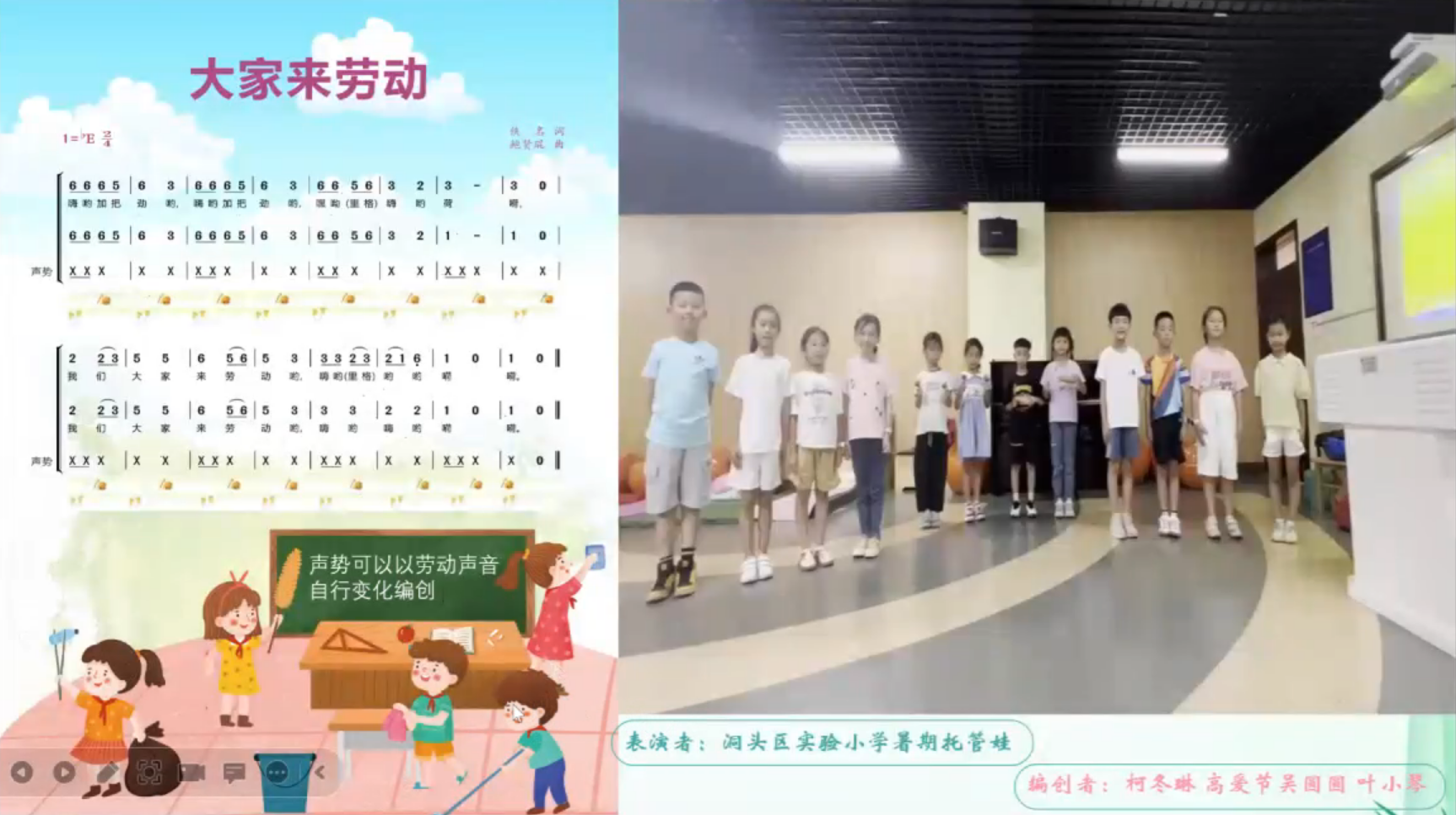 上午,学员们的作业拉开了活动的序幕,一首首熟悉又显陌生的作品依次呈现,钱老师一一分析和点评。学员们创编的形式丰富、多元:有声部的添加、声势的融合,还有乐器的加入,充满创意的同时,又具有严谨的艺术逻辑;作品呈现的形式生动、美好:有谱例、编创意图说明,还有学生和老师们的演绎视频,从想、看、听三种方式一一走进各个作品,深切感受学员们的用心、好学和潜力。