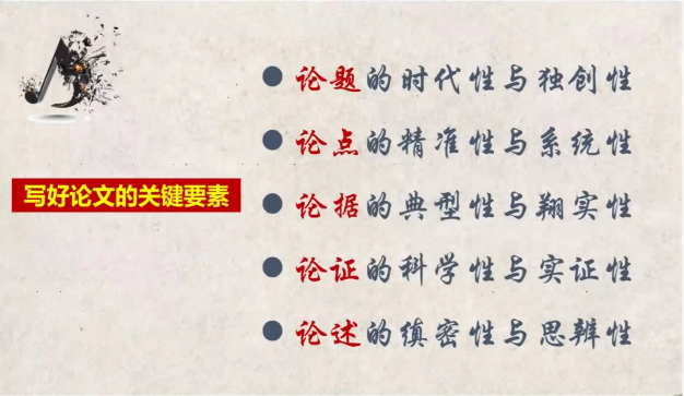 非学无以广识,非研无以成教,钱老师说:好文章,看似“写”出来,实则“思”出来。论述的力度即思考的深度,论述的宽度即思维的开度,论述的厚度即思想的高度,故,写作务必“先思而后行”。写好一篇文章,观、思、研、筛为前提,论、证、凝、达是关键。最后,是写好论文的五个关键要素:论题的时代性与独创性、论点的精准性与系统性、论据的典型性与详实性、论证的科学性与实证性、论述的缜密性与思辨性。