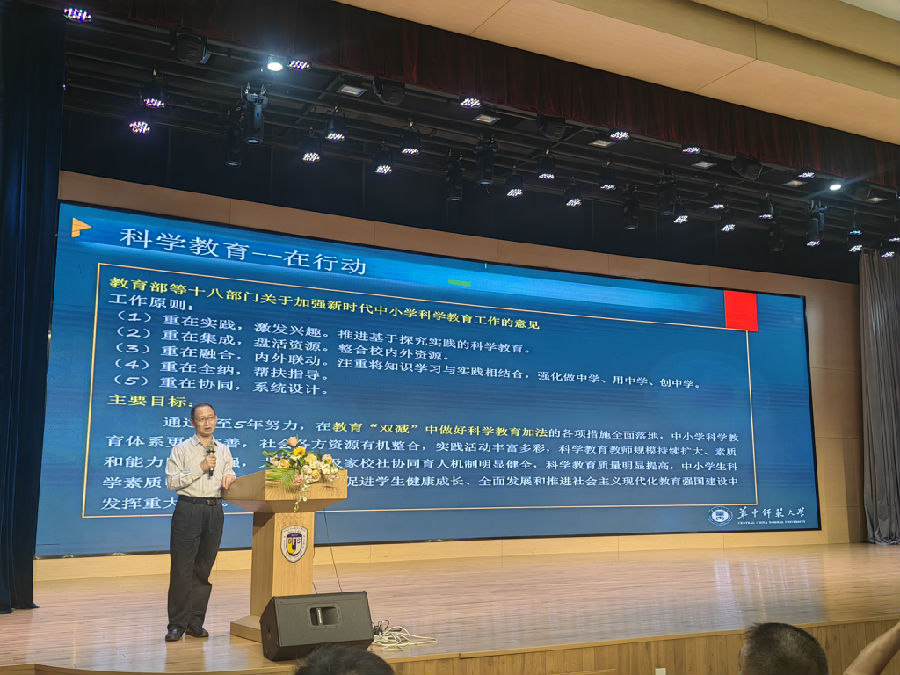 科学课标组组长、华中师范大学刘守印教授给大家带来了《跨学科概念的价值内涵与实施策略》主题讲座。讲座中刘教授带领我们从2022版科学课程标准的整体框架出发,让我们更好地理解新课标。从横向对比美国、澳大利亚的科学课标,分析了新课标的理念,阐述了科学教育的重要性,倡导我们在教育双减政策下,加强新时代中小学科学教育工作。