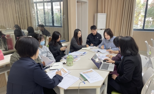 教师认真听课,在完成听课环节后,开展环节二研讨评课环节。首先,三位任课老师分享自己的教学设计与设计思路,苏虹老师、徐君晓老师、徐衍微老师、分别主评了三堂课。其他参加活动的老师也各抒己见。