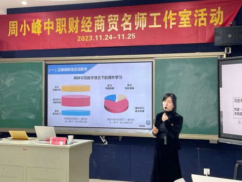 温州华侨职业中专学校特级教师张晓晨进行了主题《混合式教学在中职课堂中的应用》的讲座,从混合式教学的理论基础、模型、工具到具体实施,张老师都进行了详细的阐述,并结合外贸、物流等不同专业对混合式教学的探索,进行了经验分享。