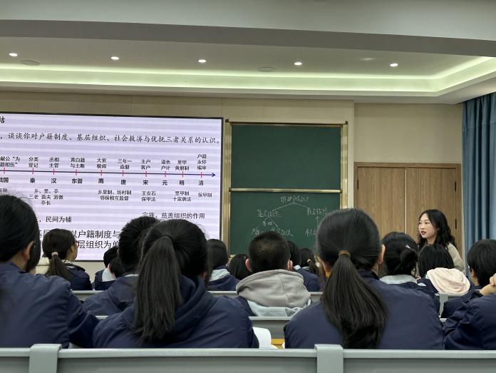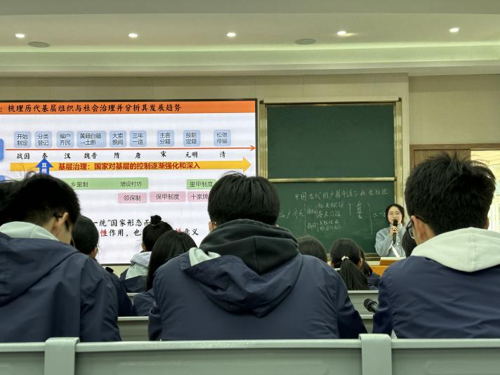 随后,平阳中学的蔡素文老师以“大国与小家”为主线,剖析编户齐民与“大一统”国家的构建的关系,通过梳理历代户籍管理制度的发展及趋势、历代基层组织与社会治理,总结户籍制度、基层治理与社会救济对大一统国家构建的意义。整节课教师举重若轻、收放自如,通过问题探究为指引,着重教材知识点的梳理与落实,引导点拨到位、讲解清晰,师生互动和谐,课堂氛围融洽。