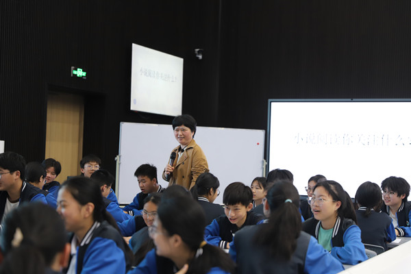 第三节是省优秀教研员陈红老师的示范课《中考文学作品复习》。陈老师从“小说阅读中你关注什么”激趣,引导学生从目标渴望、阻力障碍、循果追因等角度梳理小说情节,分析小说中的人物形象和主题意蕴,从课内到课外,并引导学生在小说阅读中关注细小、特写、前后重复之处,深化小说阅读。整个课堂活动的指向明晰,环环相扣,从而引导学生走向文本细微处。