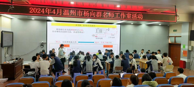 第一个环节是由榕园学校的金雷雷老师为大家带来展示课《八下第一章电与磁综合复习》,她有感于上次活动郑建铭老师的课《设计制作简易自动窗帘》而设计,并积极实践为大家呈现出来。金老师从贴近生活真实情境出发,引导学生设计符合要求的自动控制型路灯,由浅入深的优化产品和迭代,培养学生高阶科学思维。课后金雷雷老师即时对这节课发表了一些反思和看法。为了促进教学理念的落地,杨向群院长就本节课延伸出九个问题供学员分组讨论,而后由小组长上台汇报交流,强化了“怎么教”的具体指导,细化搭建学习支架,着力发展学生核心素养,点评可谓精彩。