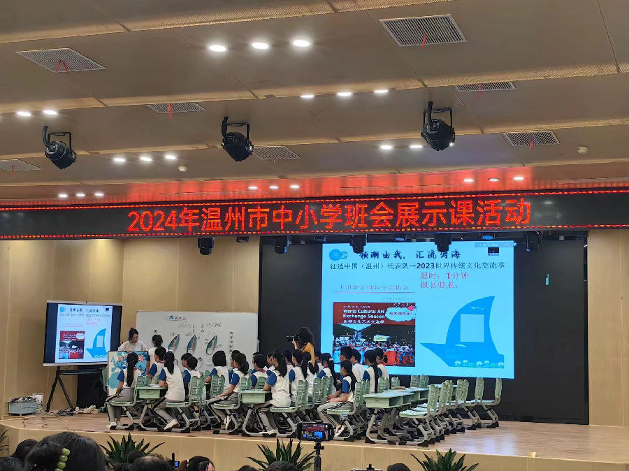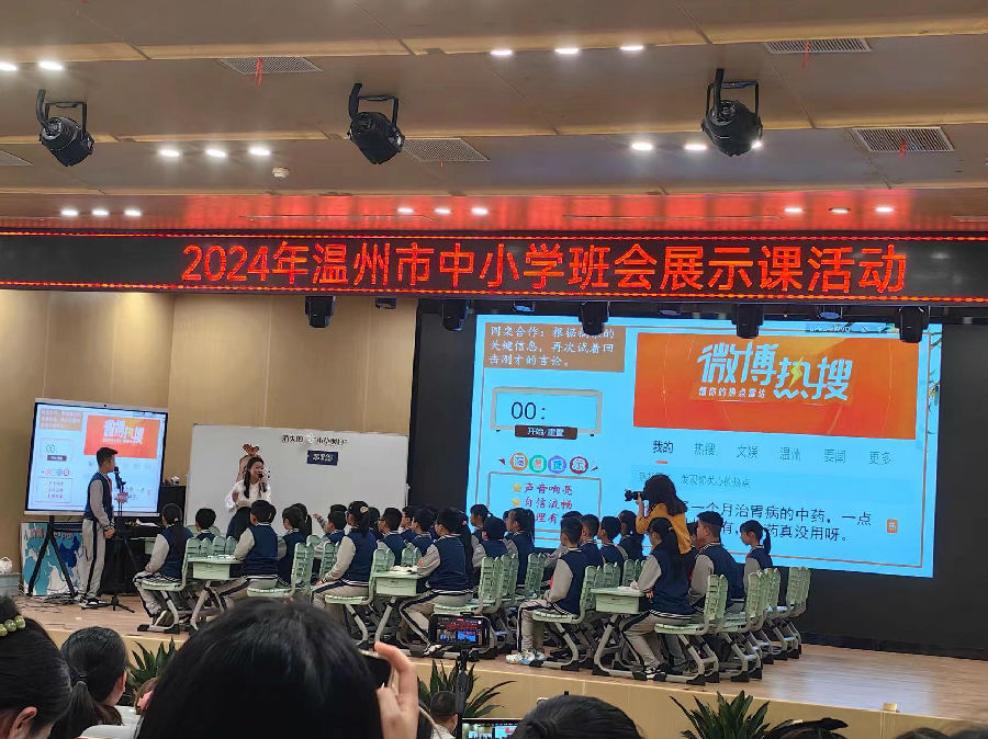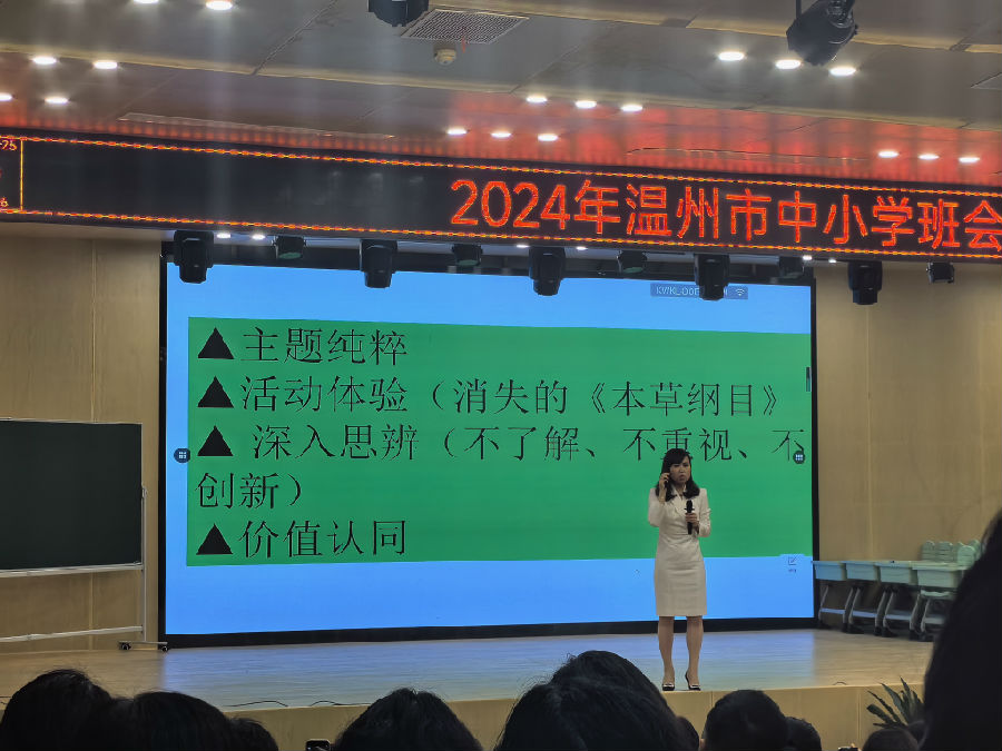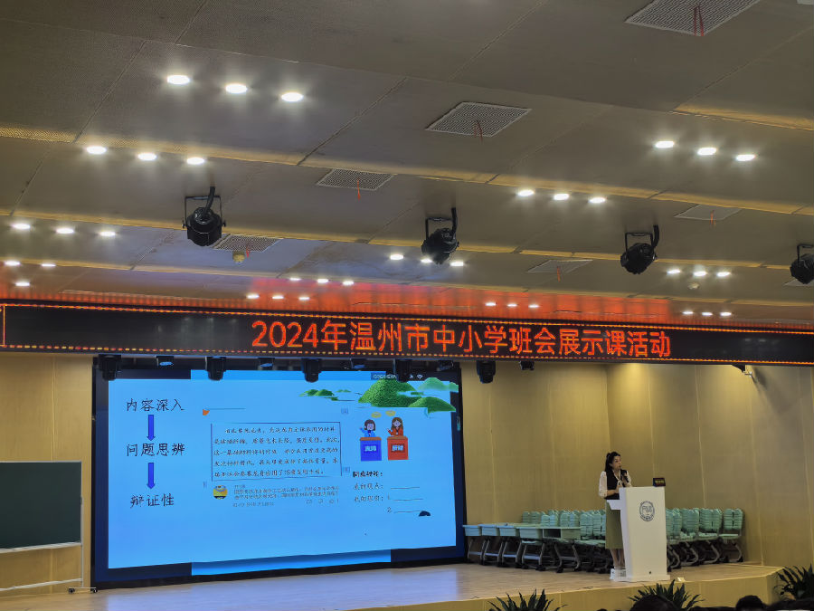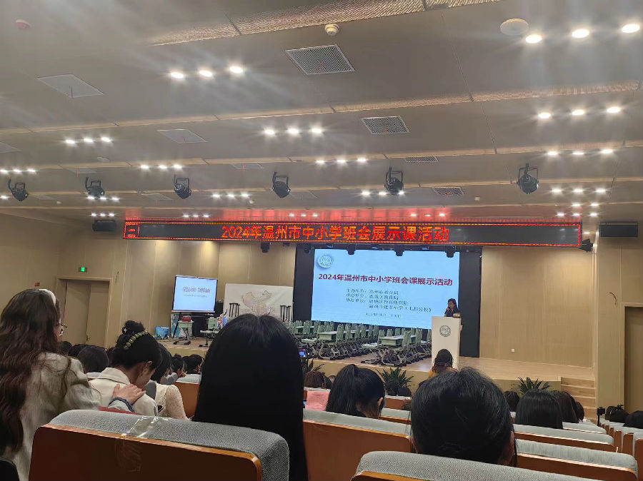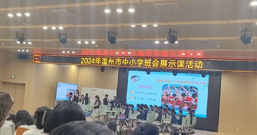 活动伊始,温州市建设小学陶晓迪校长上台致辞。陶校长介绍学校以五育并举为理念,深耕传统文化,虽建校只有短短几年,却已取得了不菲的成绩:在班会优质课比赛中,已有多位老师荣获区、市级奖项;更在刚刚结束的区级艺术节比赛中,多名师生斩获个人、集体等多项艺术荣誉。而本次班会展示活动在此举行,正是提升班主任专业素养的重要举措。
