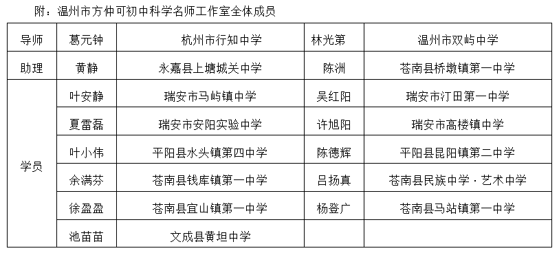 关于举行温州市方仲可初中科学名师工作室第14次活动的通知