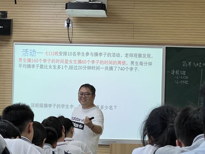 下午伊始,来自乐清市虹桥第一中学的张涛涛老师和台州临海市外国语学校的叶扬老师就《简单方程的实际应用》演绎了两堂精彩纷呈的同课异构公开课。张老师的课堂设计将复杂问题分步处理,背景情景具体连贯化。设计巧妙,重在指导学生解决实际生活问题。张老师在课堂上及时给学生评价,引导学生用不同方法解决问题。