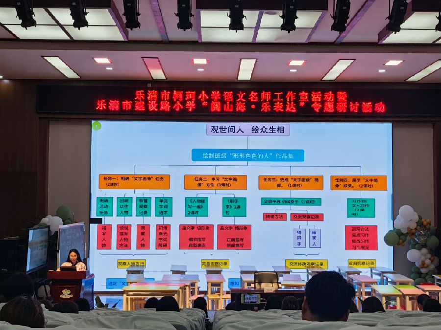 陈苹苹老师则是探索任务群视域下习作单元教学实践路径。她以五下习作单元为例分享设计语文学习任务群的方法:以生活为基础,以语文实践为主线,以学习主题为引领,以学习任务为载体,整合学习内容、情境、方法和资源等要素。真实的实践探索,让这些思考更具意义和价值。