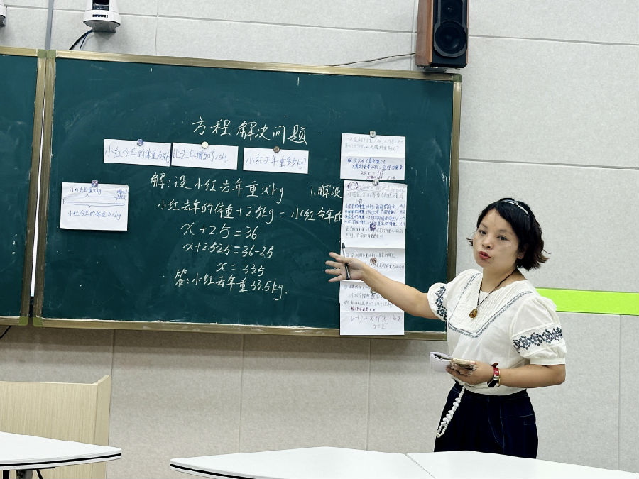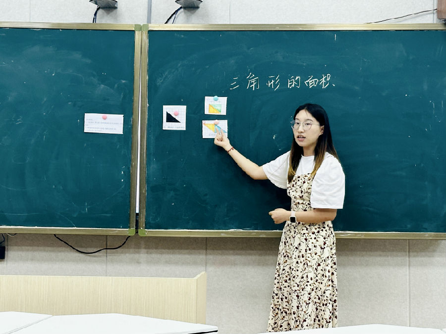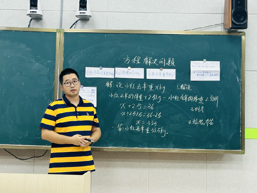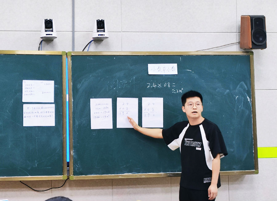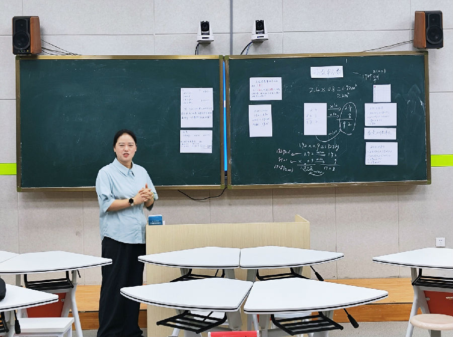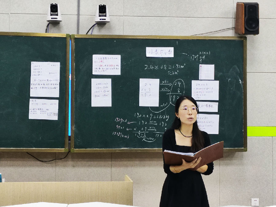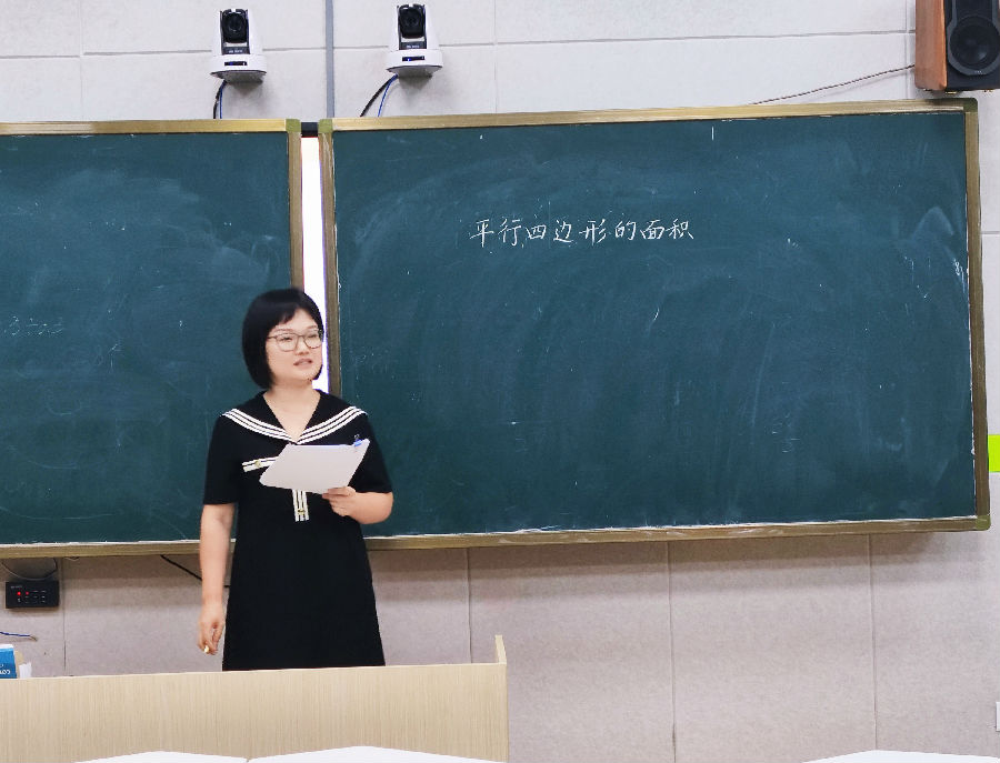 说课环节,蔡温怡老师的《小数乘法》在教学关键处发力,将教学目标与孩子的实际问题相联系,突出重点,突破难点。翁菲菲老师的《循环小数》板块清晰,创设情境让学生感知除不尽,明白为什么除不尽。蒋云老师以《平行四边形的面积》为题,通过生动的案例和互动环节,深入浅出地讲解了平行四边形面积计算的方法与原理。张树老师以《用字母表示数》为主题巧妙地结合生活实例,使抽象的概念变得直观易懂,整个过程逻辑清晰。郑亚静老师的《方程的意义》,紧扣教材主题图,帮助学生理解方程的基本概念。