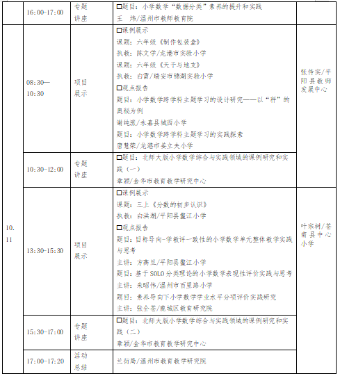 为进一步落实《义务教育课程方案和课程标准(2022年版)》,聚焦素养课堂、素养作业和素养评价研究,提升小学数学学科领军教师队伍的专业水平,提高课堂教学质量,根据本工作室工作计划,决定举行本工作室第十九次活动暨温州市小学数学“教改先锋”高端研修班研讨活动。现将有关事项通知如下:
