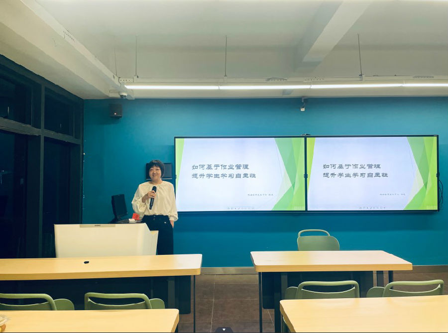 随后,瓯海区教师发展中心的林爽老师带来了专题讲座《如何基于作业管理提升学生学习自主性》。林老师从作业管理的角度出发,探讨了如何通过科学、合理的作业设计和管理来激发学生的学习兴趣和自主性。她结合具体案例,详细讲解了作业设计的原则、方法及评估方式,为老师们提供了实用的操作指南和策略建议。