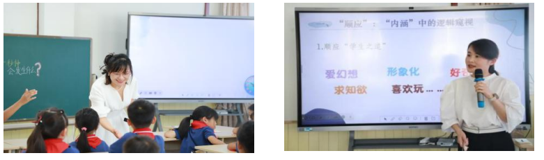 低段潘海鸯老师执教《我是一个小点点》指导课,潘老师精心构建故事背景,引领孩子们细致观察周围的圆形物体,构筑创意的支架,让孩子们开启一段奇妙的创作之旅。金慧泉老师以《创意点亮童心 表达无限可能》为题阐述了该课例如何从目标、方法、创意三个方面激发学生的语言表达。