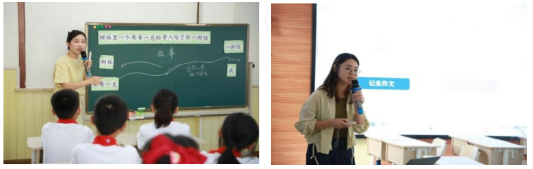 王怡璇老师带领五年级的学生关注创意话题《树林中一个奄奄一息的老人给了你一封信》中的关键信息,以话题为起始点,展开想象,创作故事。戚玲佩老师以《宽写作教学:给故事加点料》为主题进行了说课,详细解析了该课的教学理念和策略。