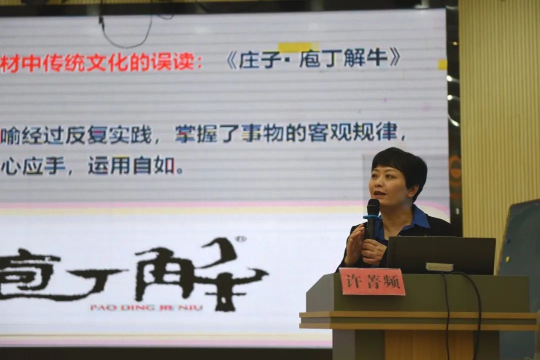 本次活动还邀请了知名学者浙江外国语学院教授许菁频博士进行了题为《小学语文古诗词阅读教学中的传统文化教育》的讲座。许教授从古诗词的文化背景、教学方法的创新以及当前社会和中小学语文教学中对部分传统文化的误读等方面进行了详细阐述,让与会教师在传统文化教学方面有了许多新的思考。