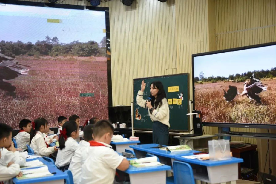 张老师和四年2班的小朋友们带来了一节生动的《麻雀》。张老师巧妙地运用新教材的特点,引导孩子深入理解文本,培养其阅读能力和思维能力。孩子们在张老师的引导下,利用“起因、经过、结果”和“看到的、听到的、感受到的”两把金钥匙逐步开展课堂探索,在多彩的语文课堂活动上充分感受了老麻雀勇敢无畏、舐犊情深的形象。