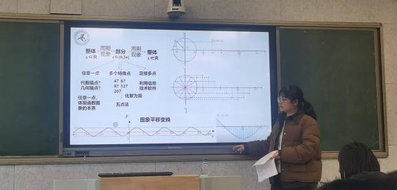 随后,四节精彩的公开课拉开了序幕。苍南中学的张鸿老师带来了《5.4.1正弦函数、余弦函数的图象》一课,通过生动的讲解和直观的图像展示,让学生深刻理解了正弦函数和余弦函数的图象特点。大荆中学的冯章信老师则围绕《5.3诱导公式(1)》进行了深入剖析,通过引导学生探究公式的推导过程,培养了学生的逻辑思维能力和问题解决能力。永嘉中学的潘淑淑老师继续讲解了《5.3诱导公式(2)》,进一步巩固了学生对诱导公式的理解和应用。龙湾中学的王黎平老师则以《5.4.2正弦函数、余弦函数的性质》为题,通过丰富的信息技术展示,让学生掌握了正弦函数和余弦函数的基本性质。