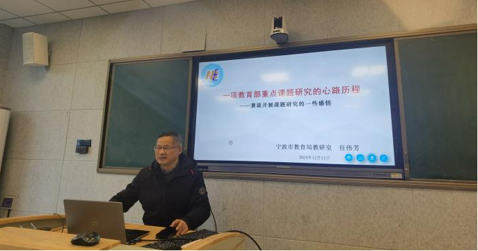 活动的最后,宁波教研室的任伟芳老师为大家带来了题为《一项教育部重点课题研究的新路历程》的专家讲座。任老师结合自己的研究经历和实践经验,分享了课题研究的方法和心得,为参会教师提供了宝贵的科研指导和实践借鉴。