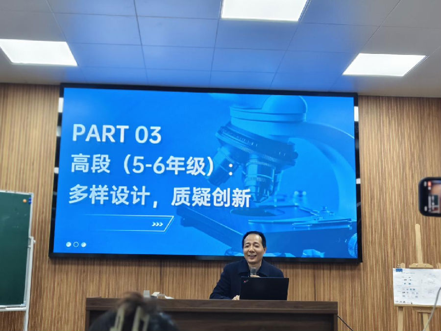 温州市名师张汉带来了《小学科学不用年段“技术、工程与物化”课程实施》的精彩讲座。讲座围绕技术工程领域学习支架的应用与年龄阶段的特点,详细探讨了如何根据不同年龄段调整教学策略。张汉老师还强调针对不同年段孩子的特点提供不同的教学支架。此外,讲座还深入探讨了工程设计思维在不同年段教学中的应用,以及技术与工程类课程的优化实践。张汉老师结合具体的课例,展开对工程技术的教学指导。此次讲座在场的老师提供了宝贵参考。