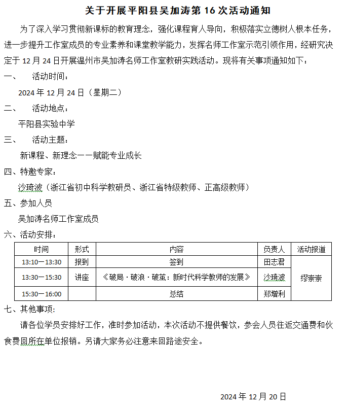 关于举行吴加涛名师工作室第16次活动的通知