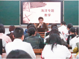 “探索了舟山的渔场、古盐场、港口和新城,认识到舟山海洋资源之丰富,也发现了舟山发展面临的具体困境。”来自平阳中学的谢德助老师进行了题为《海洋与人类》的公开课展示。他带领学生走进舟山,寻访海洋经济,探索海洋资源。在谢老师的引导下,学生们树立了正确的海洋环境观念,契合地理核心素养培育的要求。
