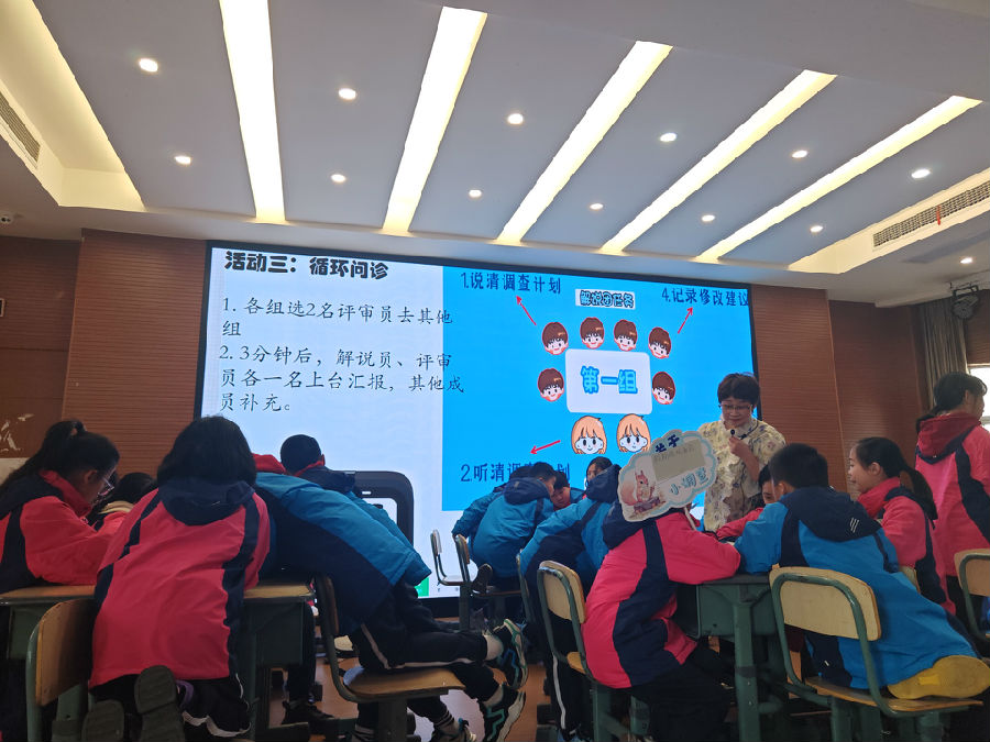 活动在下午正式拉开帷幕,首先由郑妙君老师带来了一堂别开生面的公开课《课外生活小调查》。郑老师通过生动的案例和有趣的互动,引导学生们积极参与课外生活的调查与分享。课堂上,学生们纷纷展示自己的调查结果,并进行了热烈的讨论。郑老师巧妙地引导学生们思考如何选择课外生活的主题形成研究小课题并制定了研究方案,培养他们的自主性和实践能力。这堂课不仅让学生们受益匪浅,也为在场的老师们提供了新的教学思路。