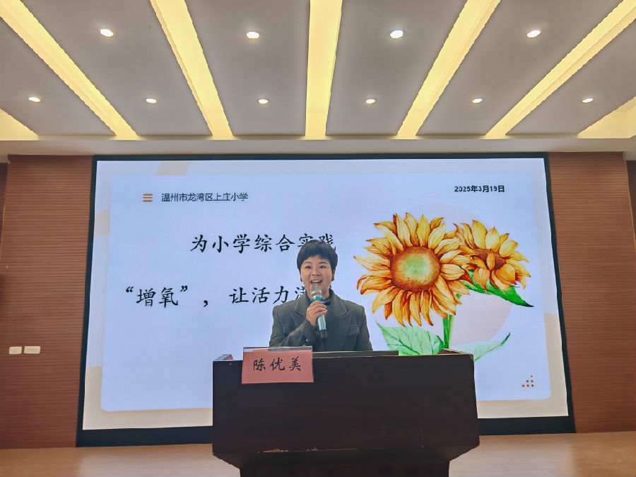 紧接着,陈优美老师为大家带来了专题讲座《为小学综合实践“增氧”,让活力满溢》。陈老师从当前小学综合实践教育的现状出发,深入剖析了存在的问题与不足,并提出了切实可行的改进建议。她强调,要让综合实践教育真正“活”起来,就必须注重学生的主体性、实践性和创新性,为他们提供更多的实践机会和展示平台。陈老师的讲座深入浅出,既有理论高度,又贴近教学实际,赢得了在场老师们的阵阵掌声。