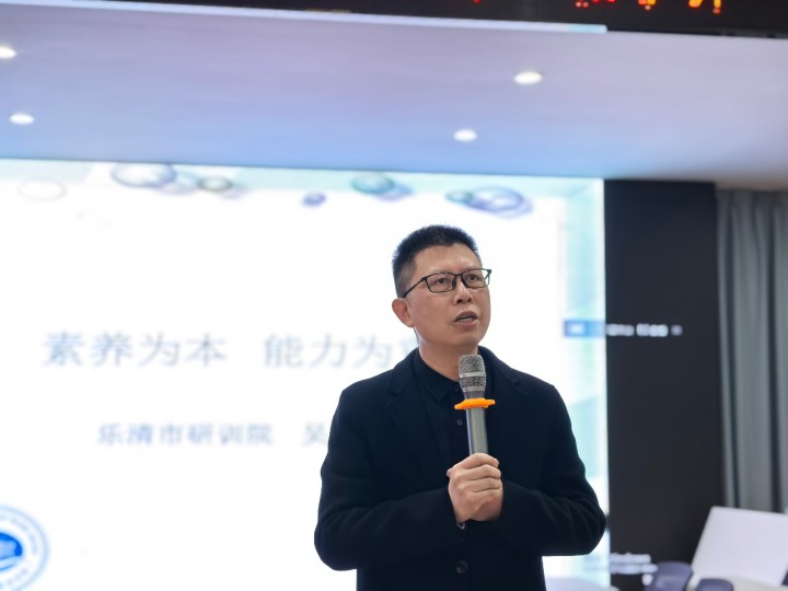 最后,乐清市教育研究培训院副院长,省特级教师、正高级教师吴立建老师进行讲座。吴老师首先肯定了年轻教师周老师的公开课,并提出几点建议:加强板书的设计,对于学生的回答如何选择,做好预设,老师自己对需要的问题如何引导,在教学的过程中要学会“放手”,相信学生。吴老师通过关于π的学生学习过程性调查向我们直观展示了我们现在教学存在的问题,让我们思考课堂教学如何做到以素养为本,能力为重,重视学生的能力培养,关注学生学习和思考过程等。