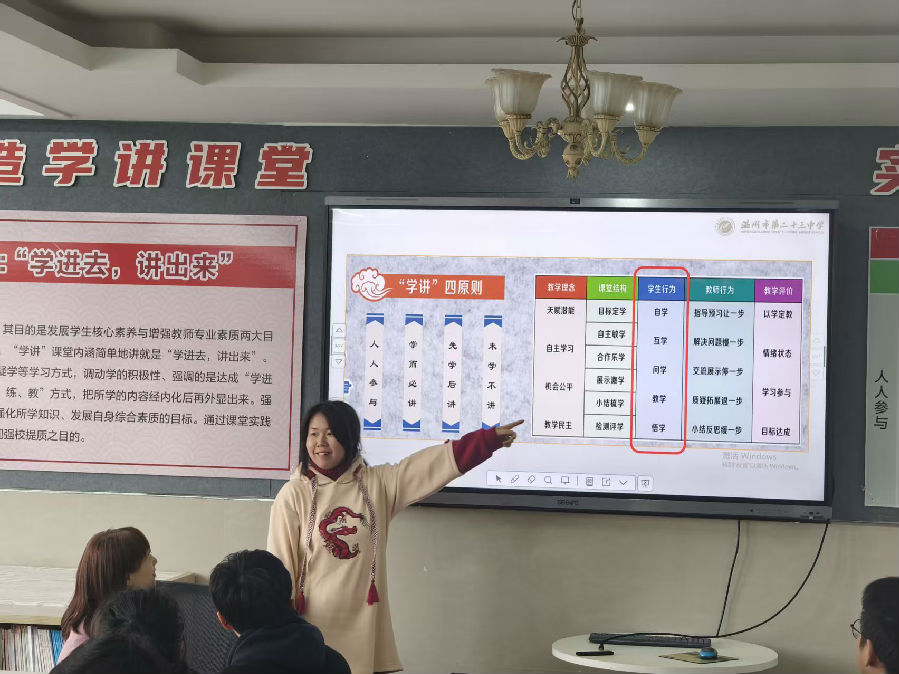 紧接着教研组长朱丽明老师结合课堂实例,开展《学生视角下素养目标导向的“学讲”课堂实践》专题讲座,浙江省特级教师曾小豆老师开展《基于问题链与任务群驱动下教学有效性的思考》讲座。就多边形的教学总结示范课中的优点与不足之处,并倾情分享自己的建议与意见。