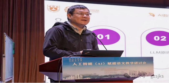 陕西师范大学贺卫东教授在《人工智能语境下语文教学意义的生成》演讲中提出:教师当为“思维摆渡人”,在AI的浩瀚银河中守护思想的明星,AI时代更需要教师转型为学生思维的引导者。这一观点获得与会者广泛共鸣。