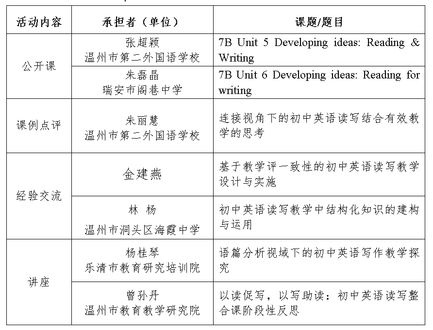 关于举行温州市初中英语杨桂琴“名师送教”工作室第15次活动的通知