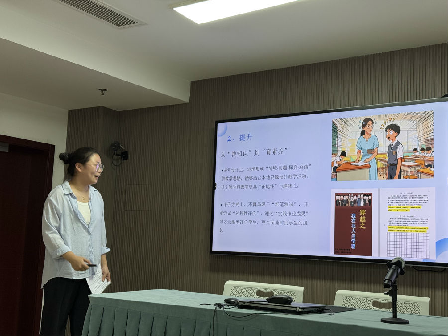 紧接着,四位学员代表依次登台,以阅读心得教学观点、培训心得的形式分享成果,生动展现工作室培育下的专业蜕变。