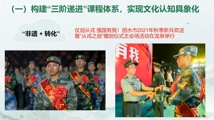 特别引人注目的是“非遗+转化”商业模拟,学生设计的青瓷手串、武侠IP联名款宝剑,甚至成为新兵入伍仪式的文化符号。练老师展示的学生作品照片中,传统工艺与现代审美碰撞出耀眼的火花。