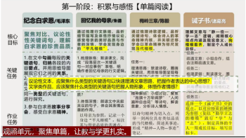 通过梳理课文、参考作业本,并重点关注阅读综合实践,小组明确了把握关键语句,理清文章结构,汲取榜样力量,建构自我价值的单元大概念,确立了单元目标。