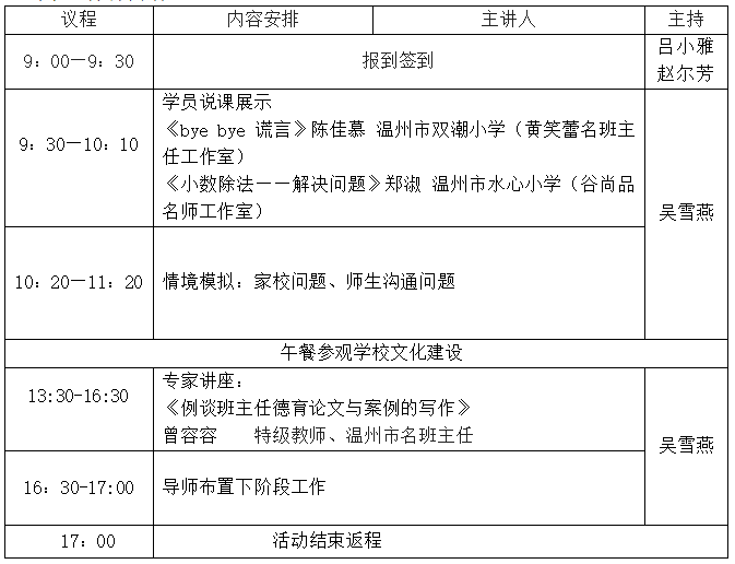 为贯彻《教育部关于进一步加强中小学班主任工作的意见》文件精神,为发挥名师的示范辐射作用,加快班主任、教师队伍建设,提高班主任、教师专业素养。决定举行2021年温州市黄笑蕾名班主任工作室、谷尚品名师工作室联合活动。现将有关事项通知如下: