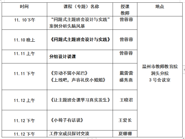 温州市    杨晖 名班主任工作室于     2021年11月10日 08:30:00时到2021年11月12日 17:00:00时