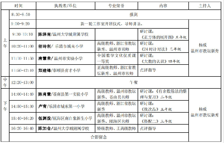 温州市 雷祖听名师工作室 名师工作室于 2022年05月12日 08:30:00时到2022年05月12日 16:40:00时