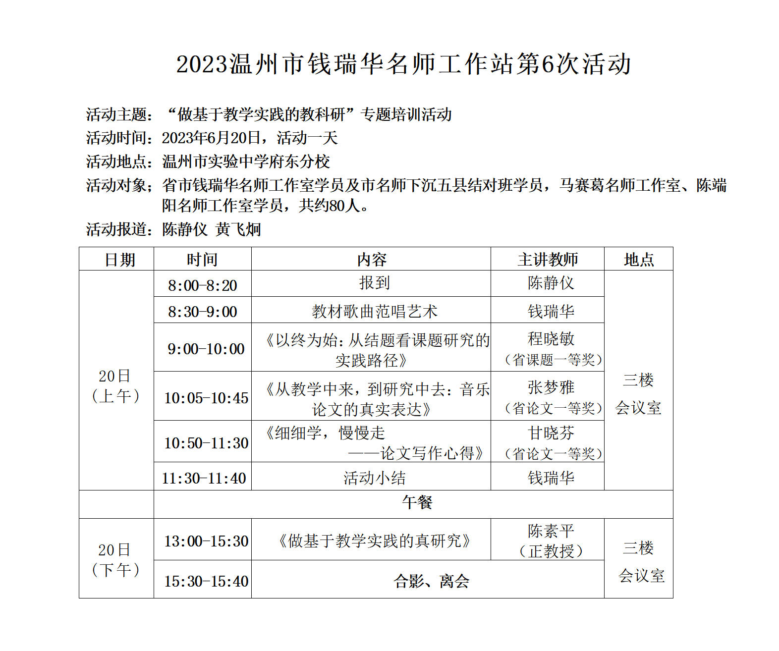温州市 钱瑞华 名师工作室于 2023年06月20日 08:00:00时到2023年06月20日 16:00:00时
