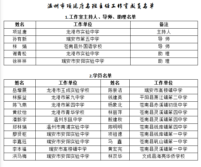 > 关于举行温州市项延唐名班主任工作室第14次活动的通知