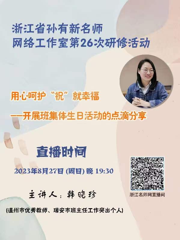 温州市 项延唐 名班主任工作室于 2023年08月27日 19:30:00时到2023年08月27日 20:30:00时