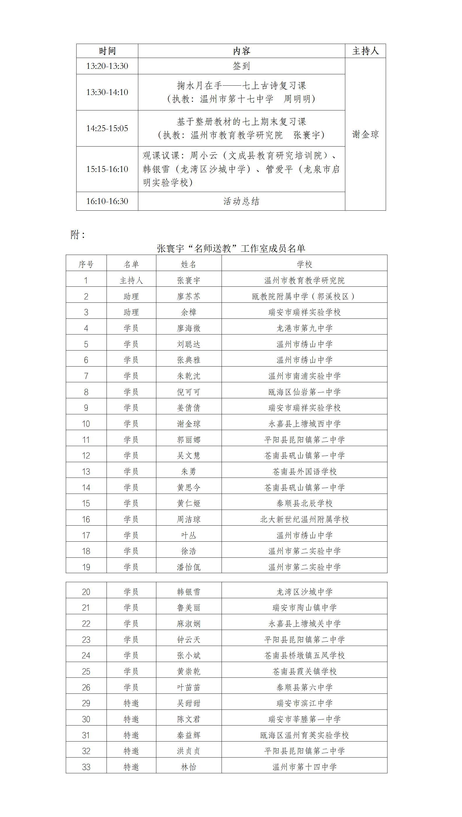 温州市 张寰宇“名师送教” 工作室于 2024年01月03日 13:20:00时到2024年01月03日 16:30:00时